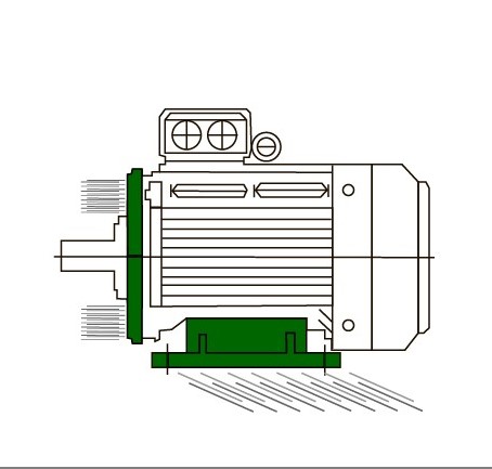 IM 1081 — электродвигатель АИР с лапами. Лапы позволяют установить двигатель параллельно к крепежной поверхности.